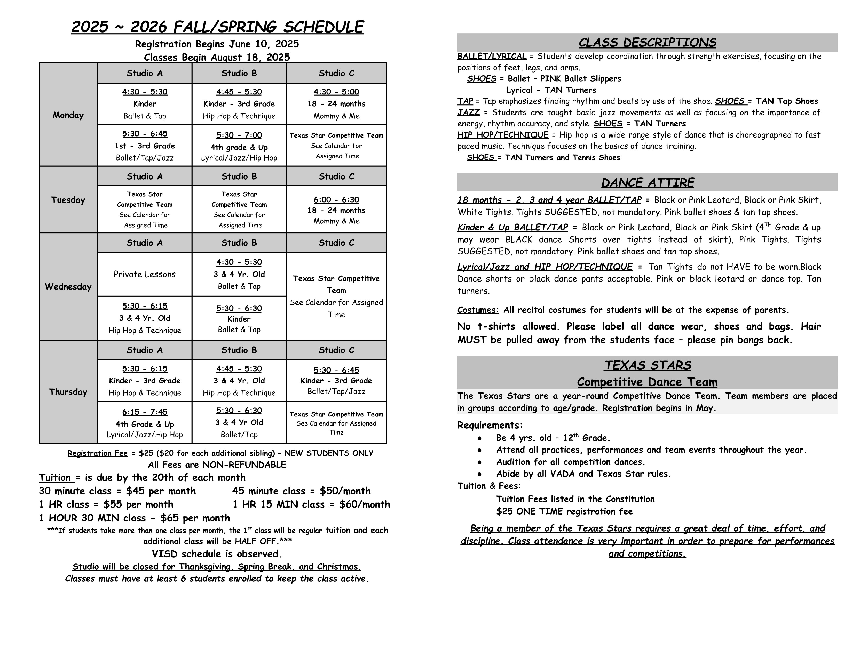 Fall/Spring Schedule
